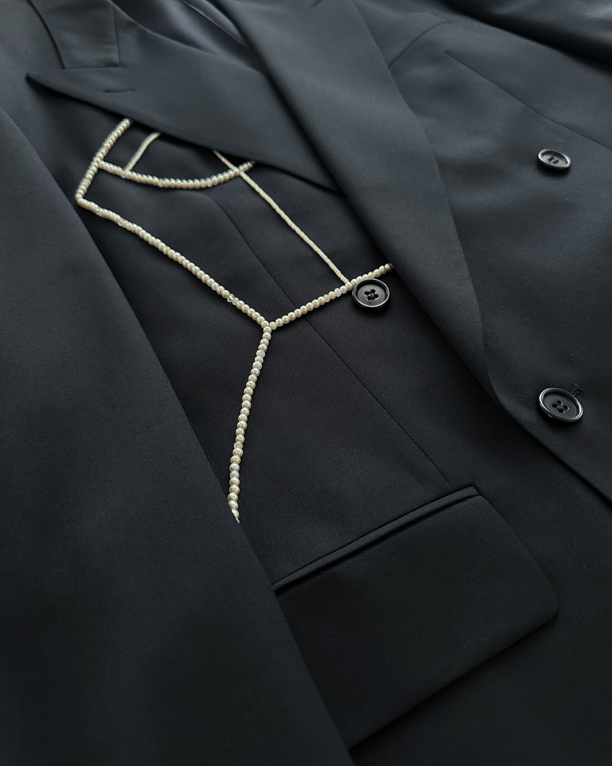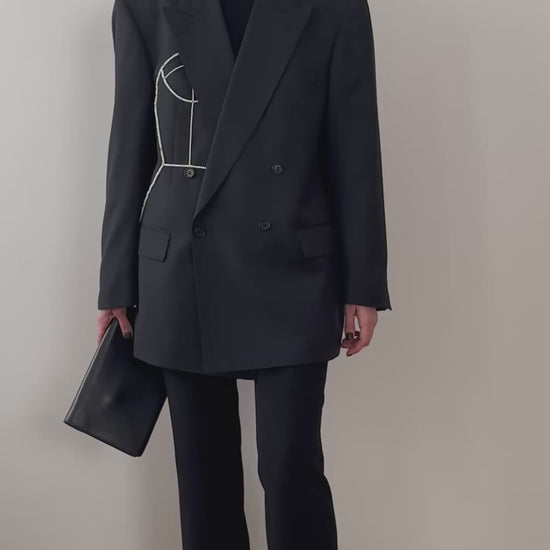 DOUBLE BREASTED WOOL BLAZER WITH HAND-BEADED CORSET DESIGN
