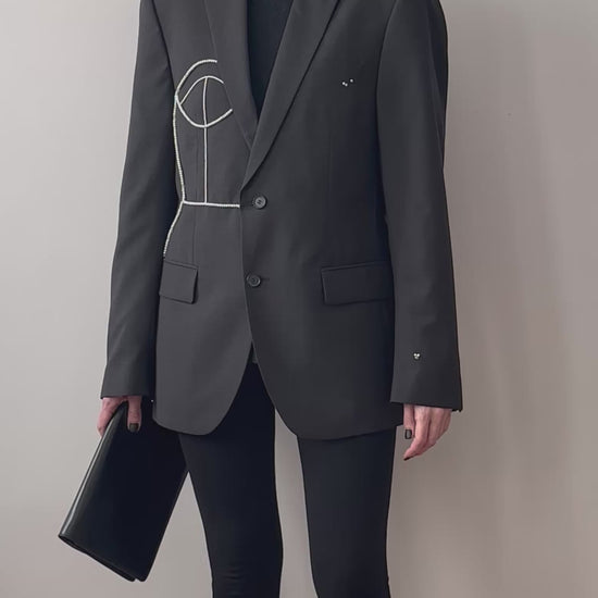 GRAY WOOL BLAZER WITH HAND-BEADED CORSET DESIGN